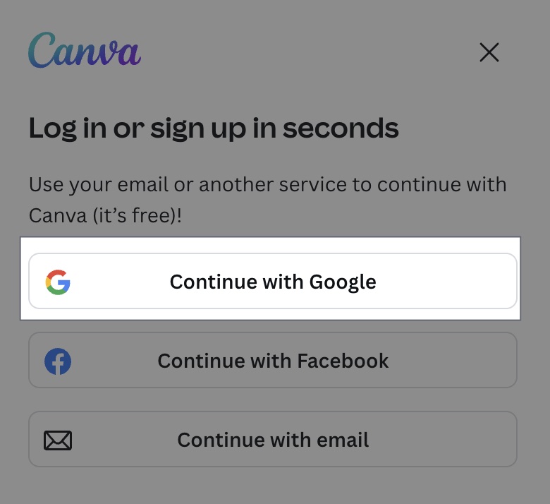 步驟 3. Google 登入 Canva 帳號
