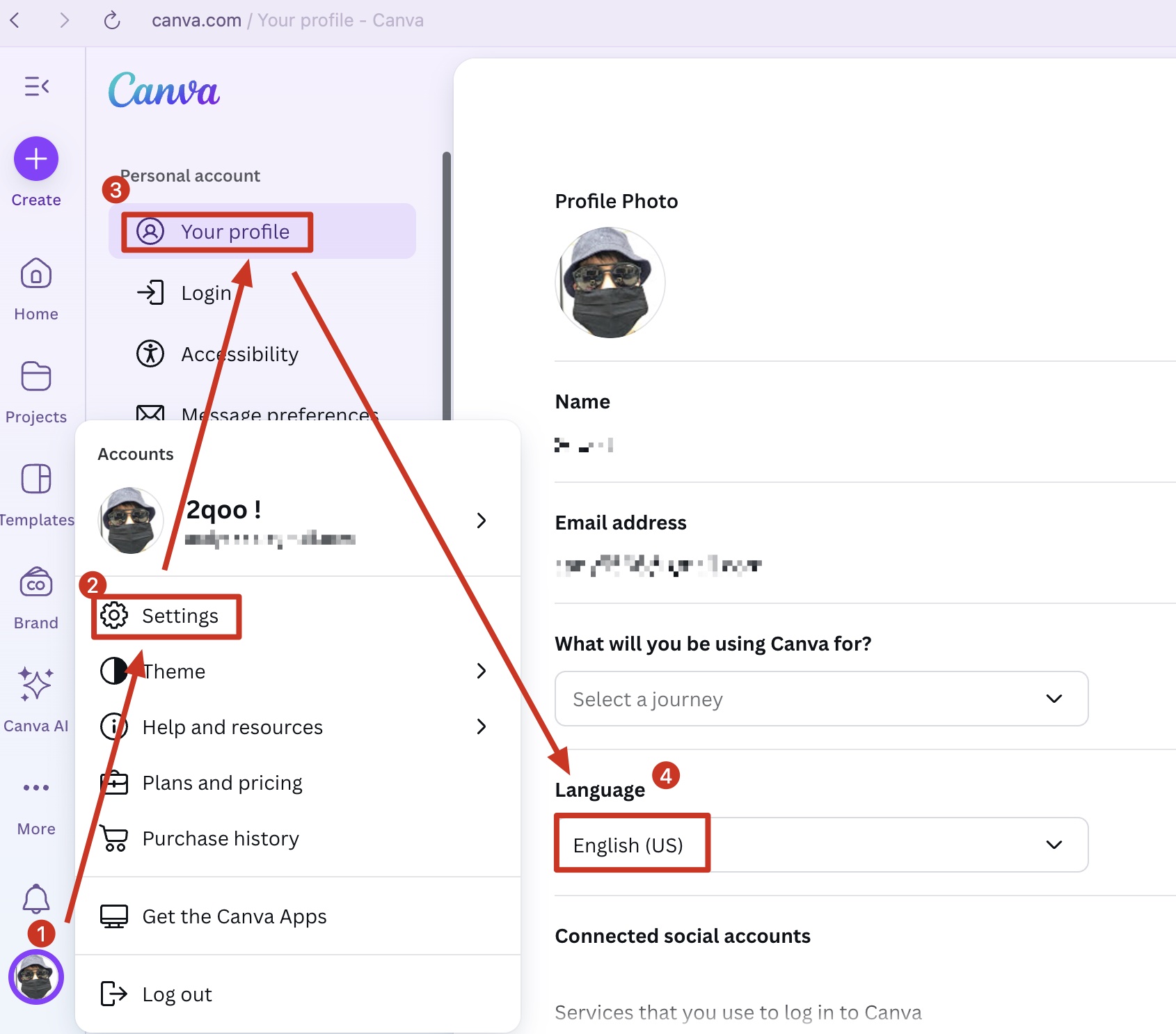 步驟 4. Canva 語言設定先轉成英文 (為了GPT Bug)